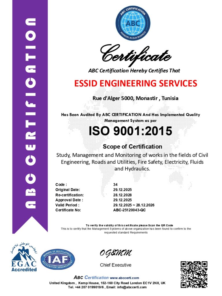 Essid Engineering Services (EES) est un bureau d’ingénierie multidisciplinaire fondé par Mme Afef Essid, ingénieur en électricité et en génie civil.